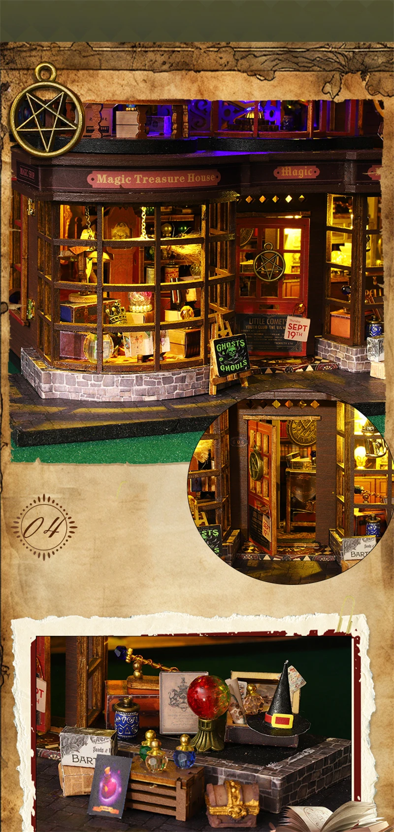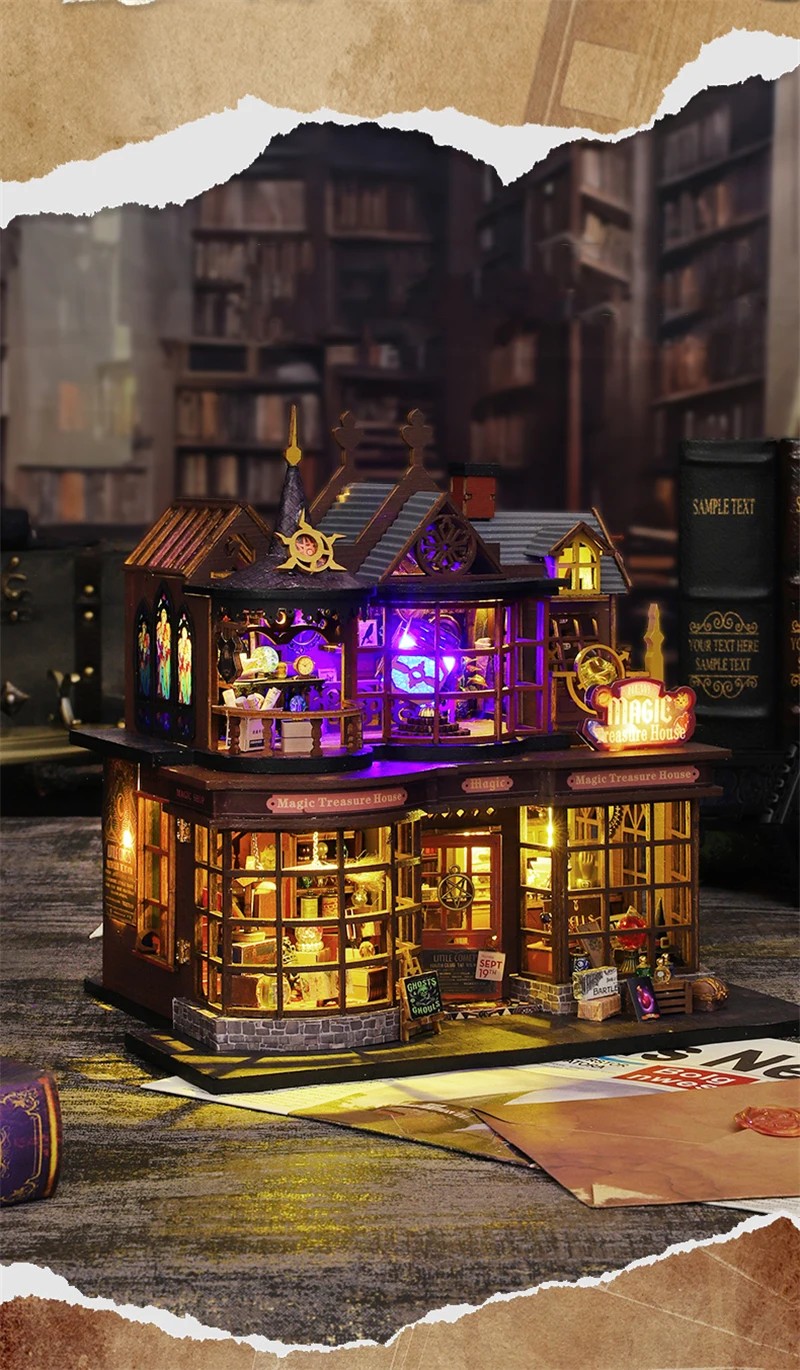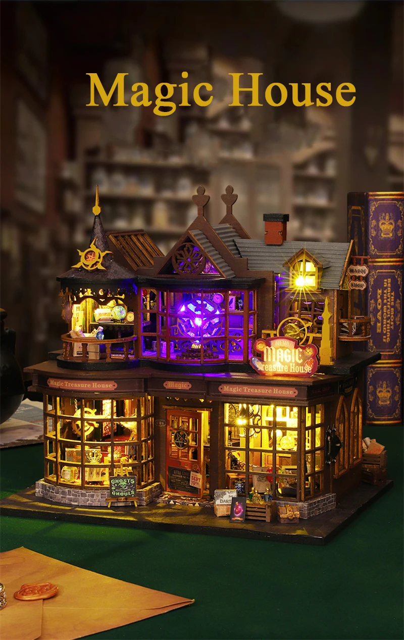 DIY Wooden Magic House Casa Doll Houses Miniature Building Kit Dollhouse with Fu