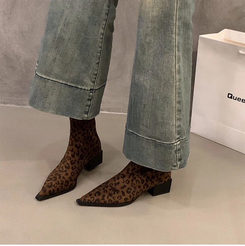 Bottines léopard de styliste pour femmes, bottines courtes à bout pointu