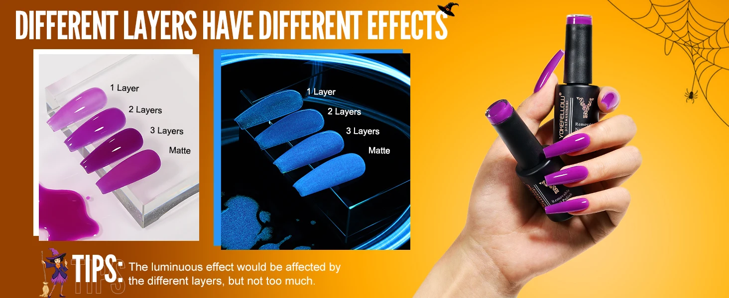 YOKEFELLOW Glow in the Dark Gel Nail Polish 10ML Fluorescent Neon Blue Glow UV G